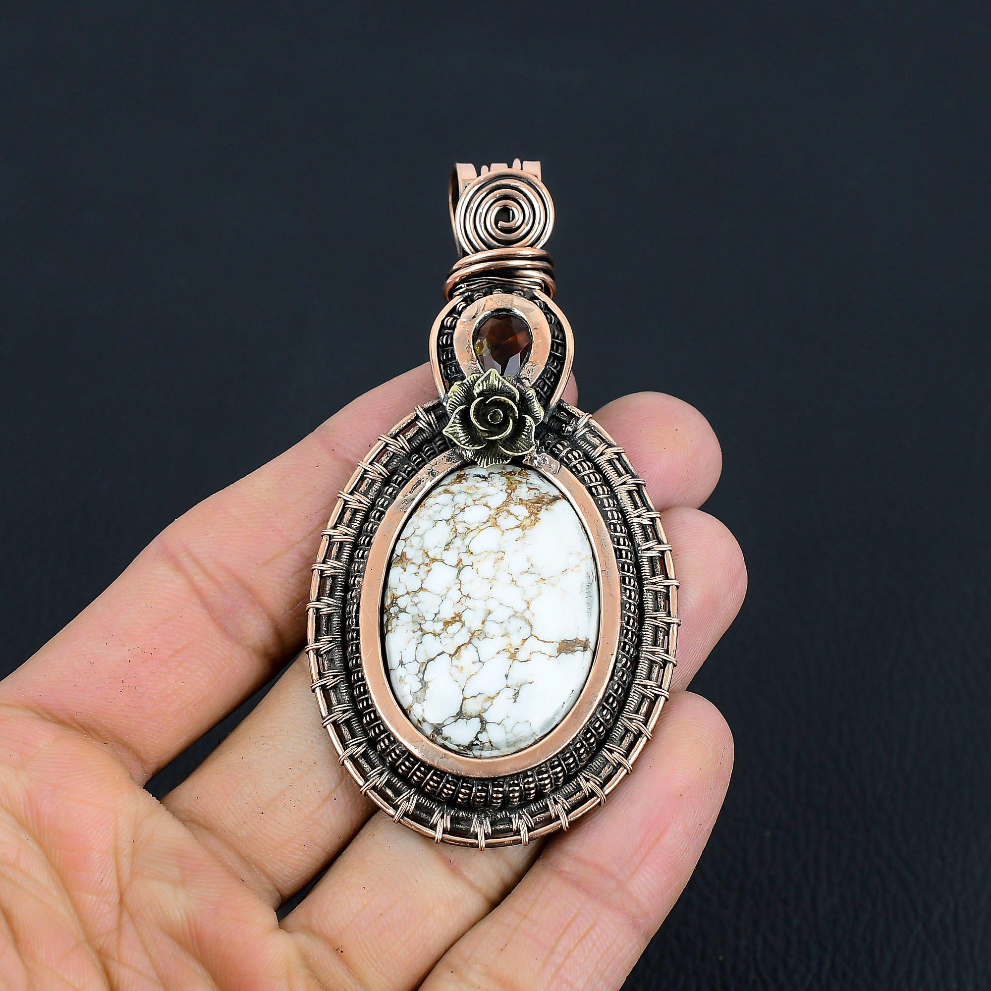 Ювелирные изделия с подвеской из чистой медной проволоки ручной работы из драгоценного камня дикой лошади на День памяти 3.35 Inches белый