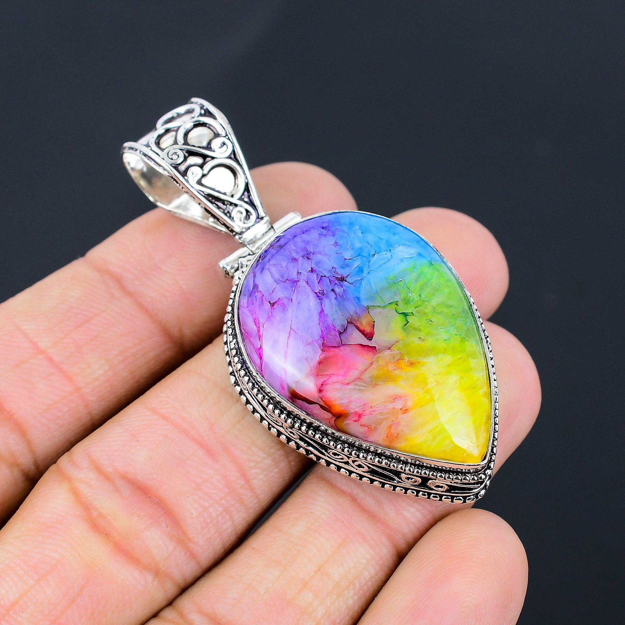 Ювелирный кулон ручной работы из стерлингового серебра 925 пробы с радужным кварцем и драгоценным камнем 1,65 дюйма