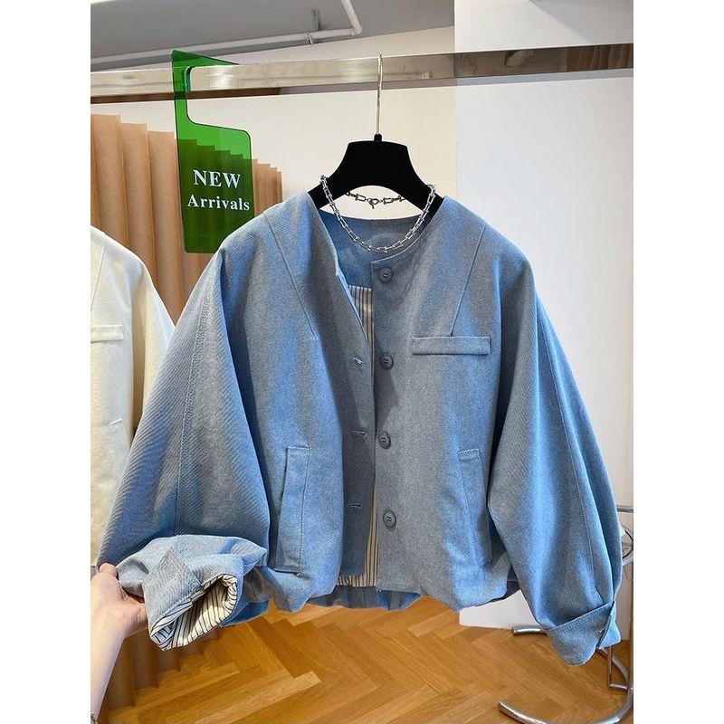 Южная Корея Высокий стиль Верхняя одежда без воротника Женская Ранняя весна 2025 Новая Свободная Повседневная Универсальная Простая Укороченная куртка Топ Blue M