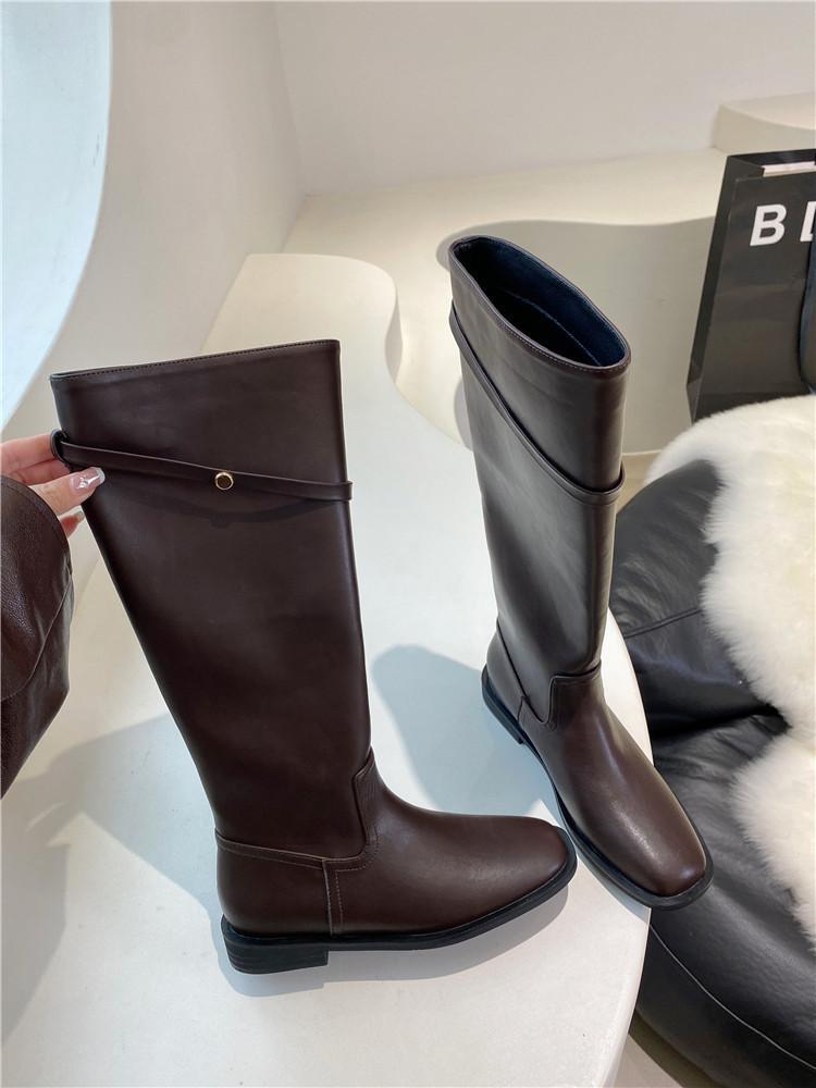 Южная Корея Тондэмун высокие сапоги женские сапоги осень и зима новые большие окружности трубы ретро маленькие золотые пряжки колено рыцарские сапоги 39
