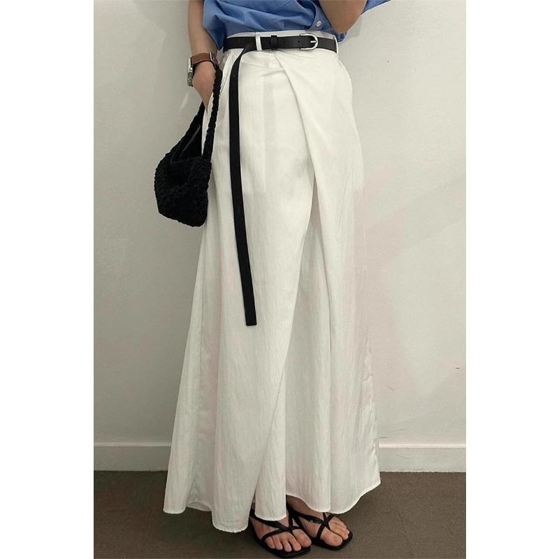 Южная Корея Шикарная летняя универсальная юбка через плечо с высокой талией для похудения и складками, дизайн Sense, юбка трапециевидной формы, длинное платье для женщин