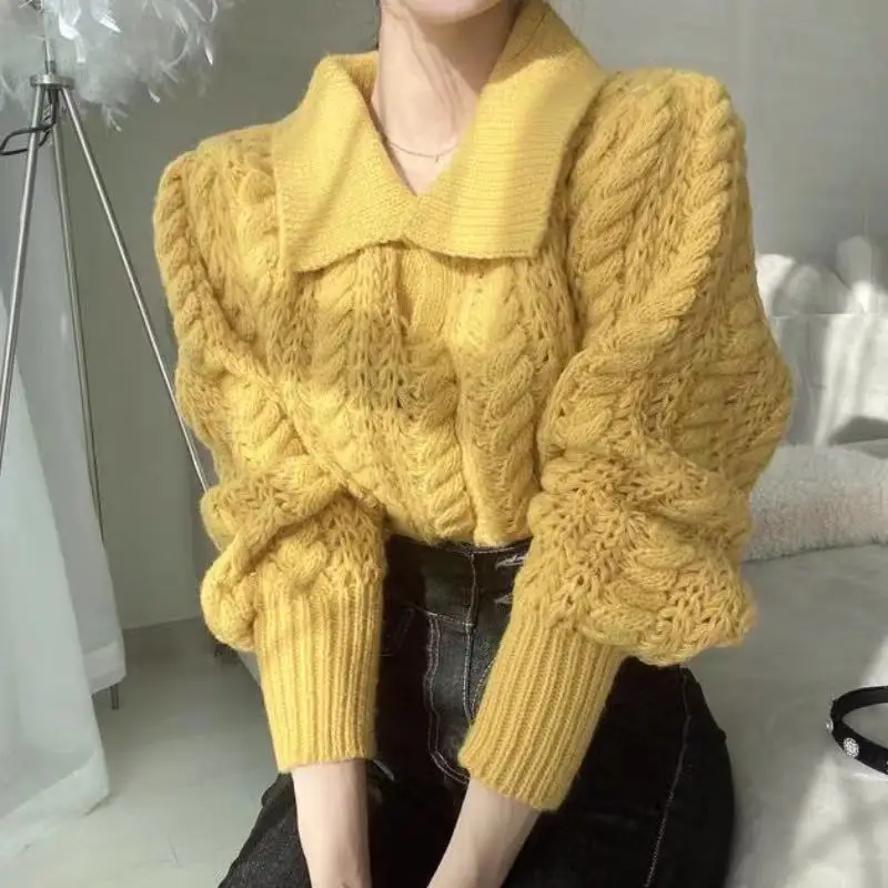 Южная Корея, шикарный Милый воротник поло для снижения возраста, тяжелая промышленность, утолщенный Свободный вязаный свитер с вырезами, же...