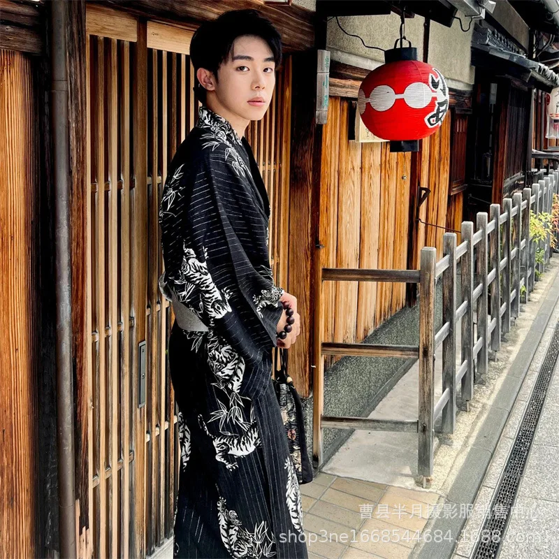 Юката Мужская Высокое Качество Японский Стиль Традиционная Пижама Домашнее Самурайское Кимоно Азиатская Одежда Домашняя Одежда Халат Оби Длинные Кимоно Юката