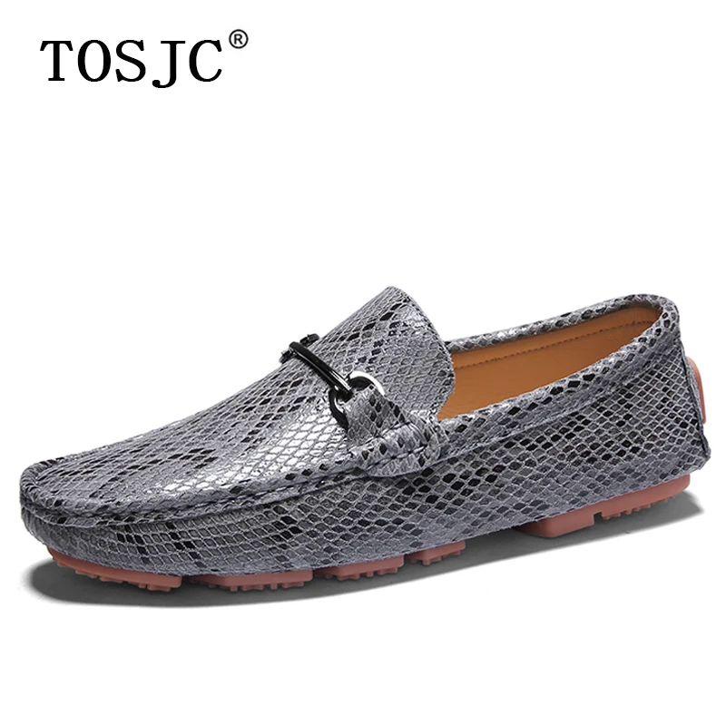 TOSJC Mens Buckle Loafers Snake Pattern Moccasins Breathable Slip-on Man Boat Shoes High Quality Driving Shoes Soft Flat Shoes