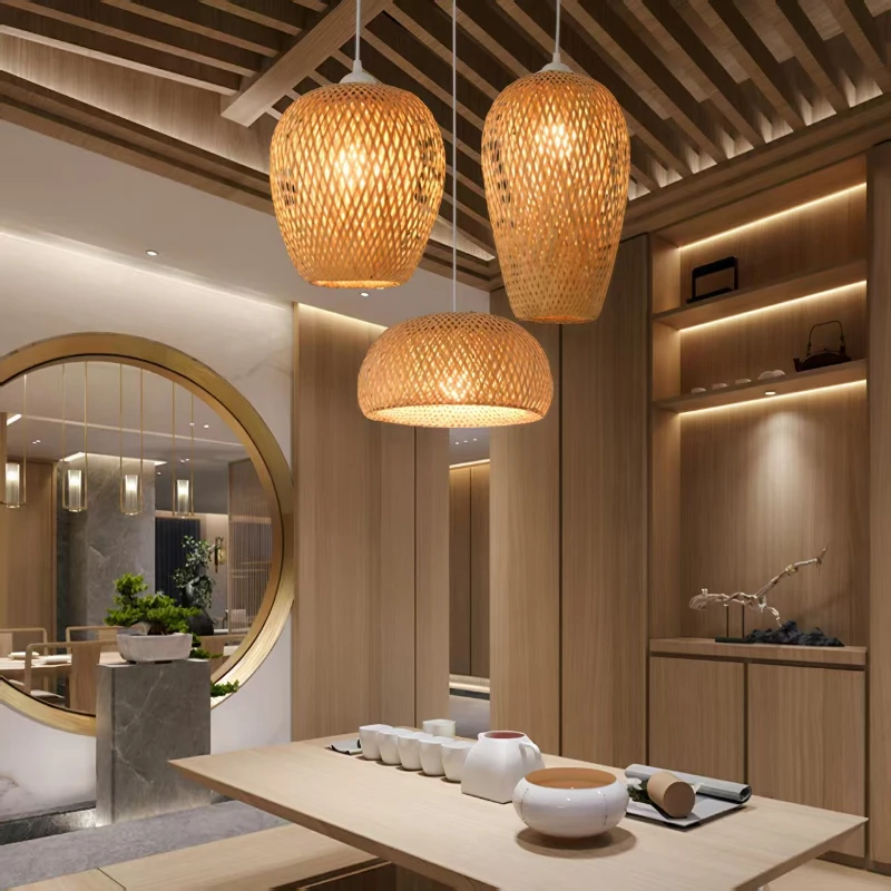 Nordic Serene Style Natural Rattan Wicker Chandeliers Dining Room Pendant Lamp Decoration Maison LED Lighting Lamps