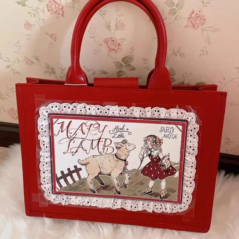Японская большая сумка в стиле Лолиты с героями мультфильмов, женская винтажная сумка на плечо большой вместимости, женская кожаная розовая сумка с бантом в стиле Харадзюку для девочек