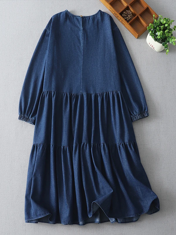 Японская джинсовая юбка миди в стиле ретро в стиле пэчворк из чистого хлопка, женская джинсовая юбка свободного кроя, длинная светящаяся милая одежда, повседневная одежда трапециевидной формы...