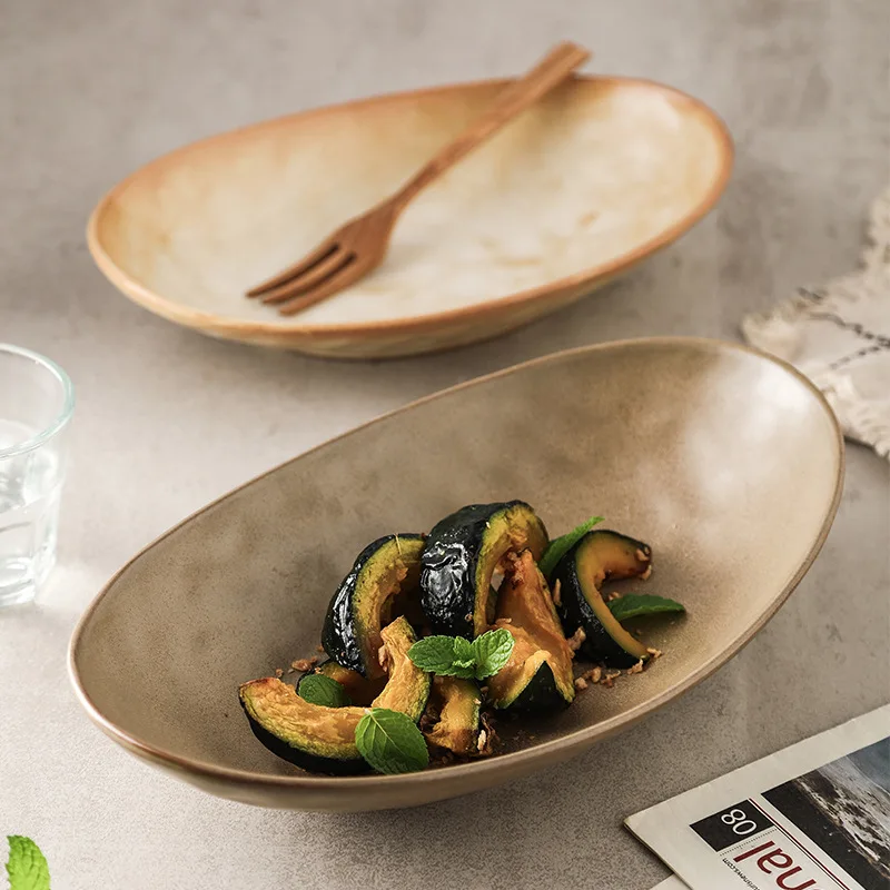 Японская керамическая тарелка в стиле ретро, овальная тарелка, тарелка для рыбы, салатница, холодное блюдо, посуда в форме лодки