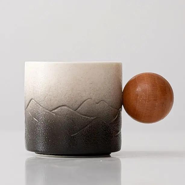 Японская керамическая чашка Коммерческая кофейная чашка с ручкой Пара кружек Подарки Офисная кофейная чашка с крышкой 245ML чёрный