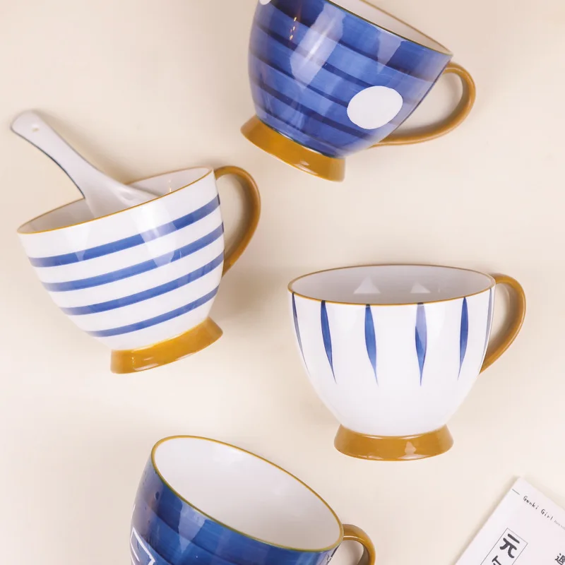 Японская керамическая чашка с ручной росписью, чашка для завтрака, Детская креативная Простая Офисная чашка для дома, кофе, молока, контейне...