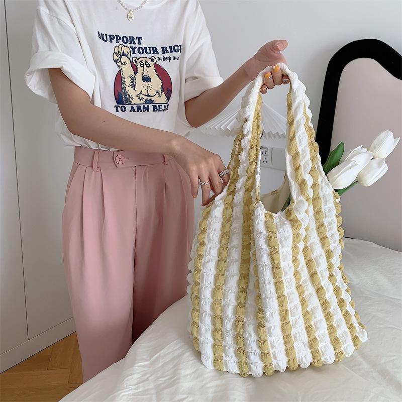 Японская и корейская весенне-летняя плиссированная сумка-облако с пузырьками, свежая холщовая сумка через плечо для девочек-студенток, сумка подмышкой