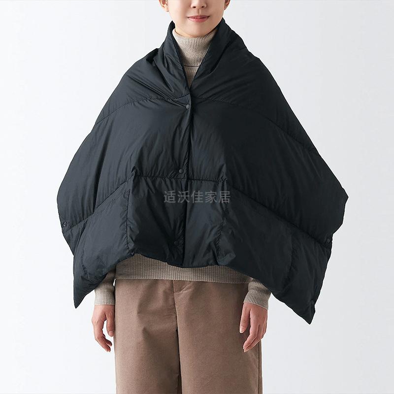 Японская легкая переносная пуховая шаль, теплая ветрозащитная водонепроницаемая накидка, плащ, однотонный шарф, чехол, осенне-зимняя шаль about 150x wide 55cm чёрный
