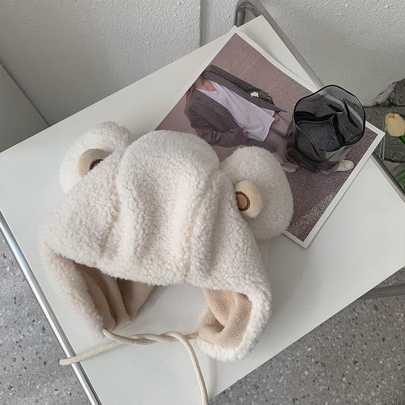 Японская милая шапка с защитой ушей в виде медведя на осень и зиму, утолщенная теплая плюшевая шапка, шапка-ушанка, женская ветрозащитная велосипедная шапка M(56-58cm)