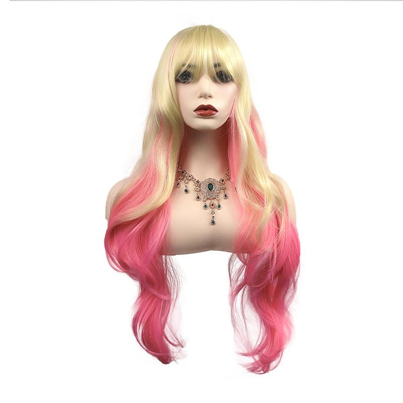 Японская мода темперамент золото постепенное изменение порошок длинные вьющиеся волосы с товарами большая волна парик женщины полный головной убор