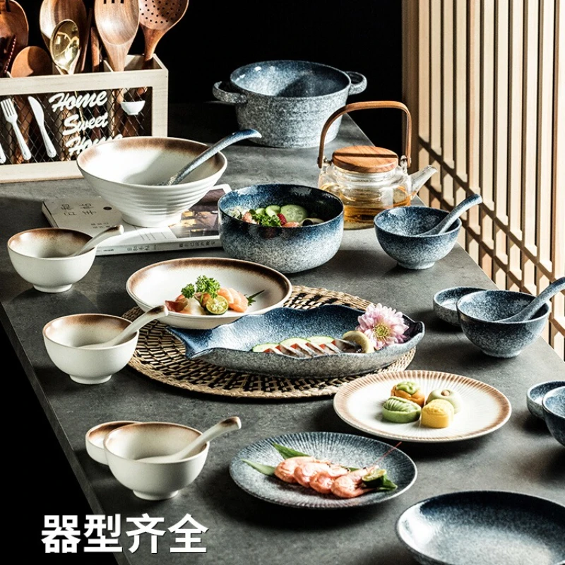 Японская посуда, набор посуды, легкая роскошь, высококачественная бытовая керамическая посуда в стиле ретро, посуда и палочки для еды