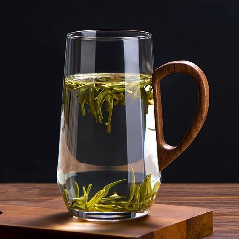 Японская стеклянная чашка для чая, бытовая чашка для зеленого чая, хрустальная чашка, чашка для зеленого чая, специальная для заваривания зеленого чая, для мужского офиса, с ручкой, чашка для воды 450ml