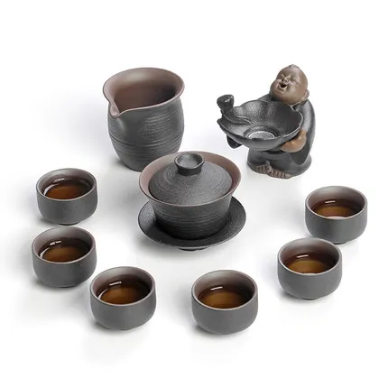 Японская черная керамика, домашний чайник, чайные чашки, полный набор из керамической подарочной коробки для чая
