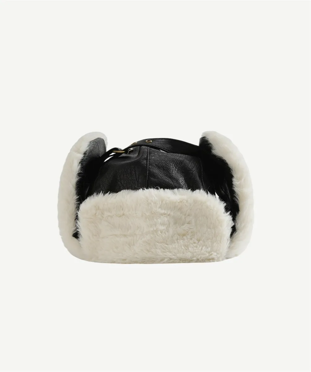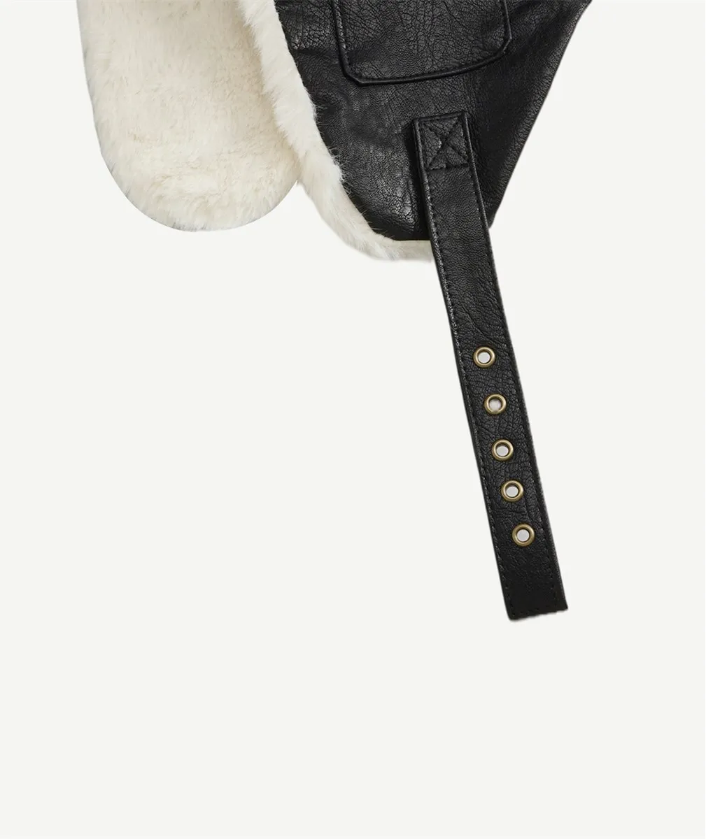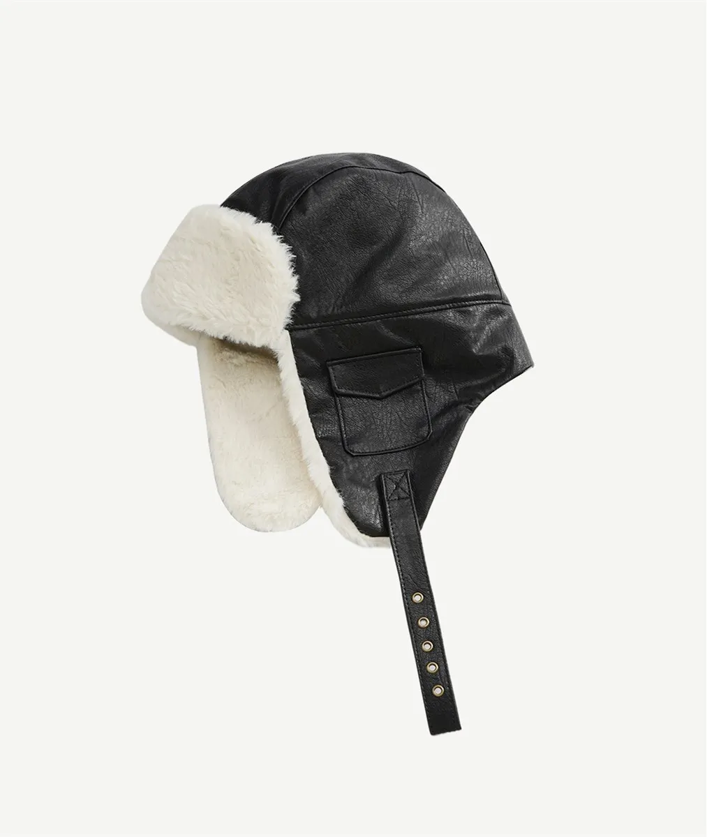 Японская черная ушанка из искусственной кожи, женская зимняя теплая шапка-ушанка на флисовой подкладке, Мужская Уличная непромокаемая ветр...