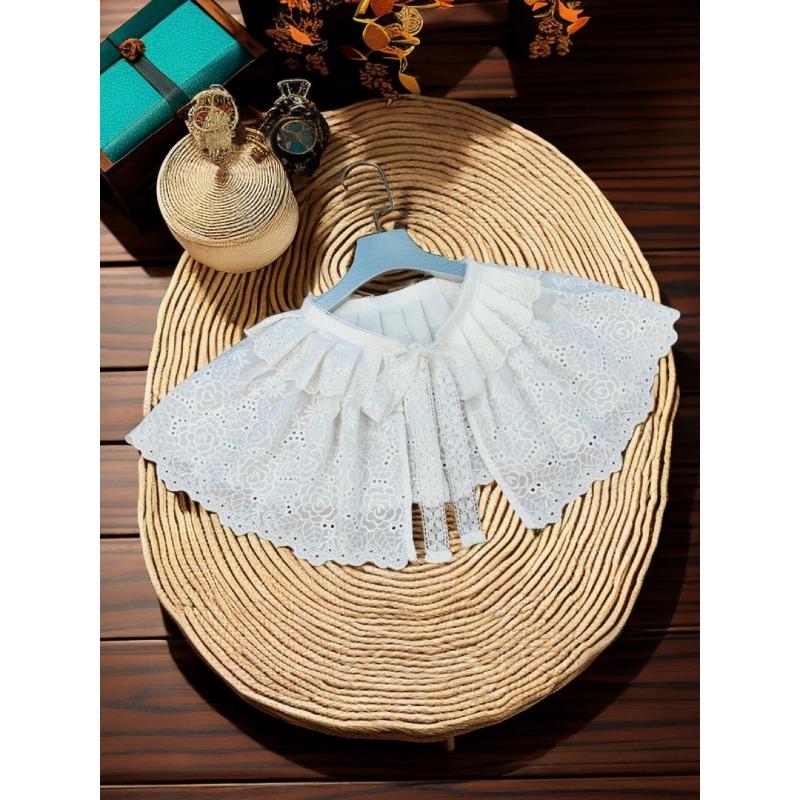 Японский взрывной чистый хлопок, пустое шоу шипов, маленькая шаль, гофрированный край, шаль, поддельный воротник, с небольшой экспертной универсальной формой белый