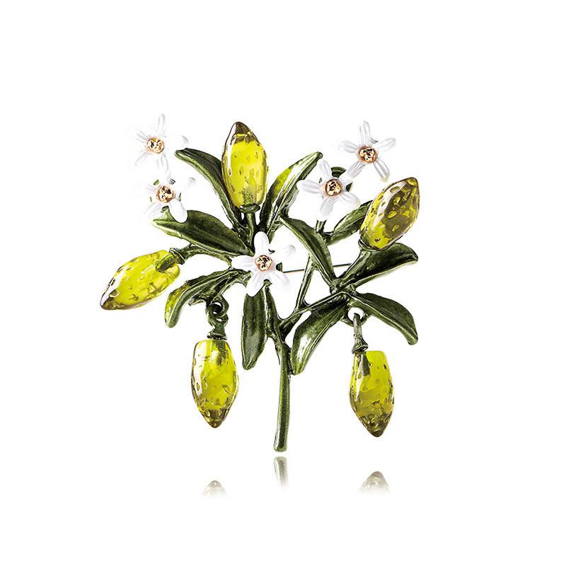 Японский винтажный винтажный зеленый масляный цветок брошь с цветочным узором в виде цветка лимона и жемчуга корсаж ципао
