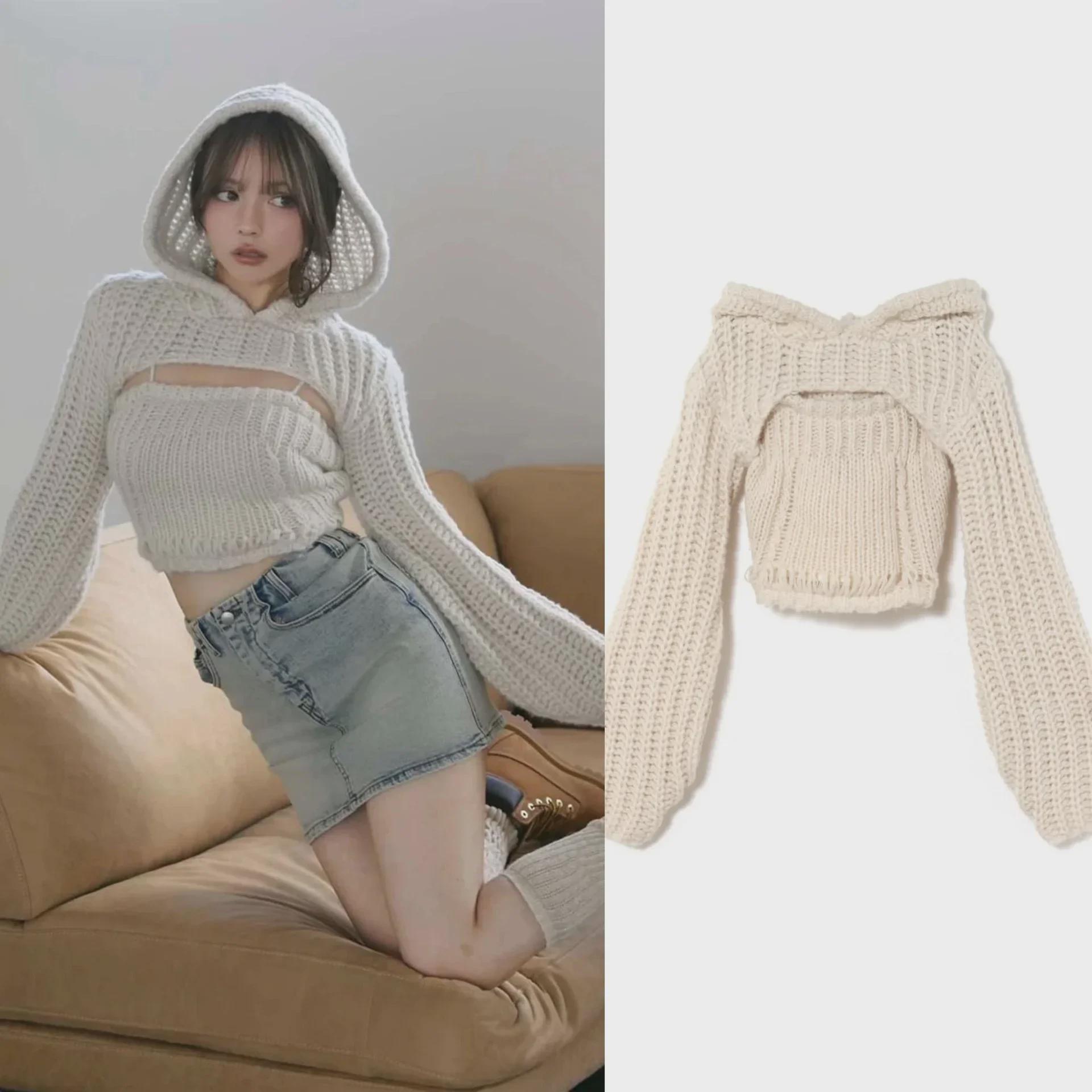 Японский стиль Мэри 2025 Осень/Зима Комплект из свитера с капюшоном и подтяжек One Size