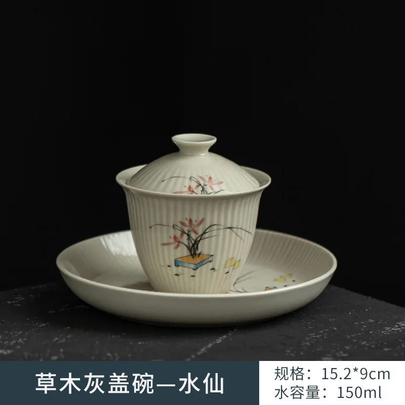 Японский стиль, пепельная глазурь, простая керамическая трехзубная крытая чаша, чайная чаша, чайная чаша, ручная крытая чаша для заваривания чая кунг-фу