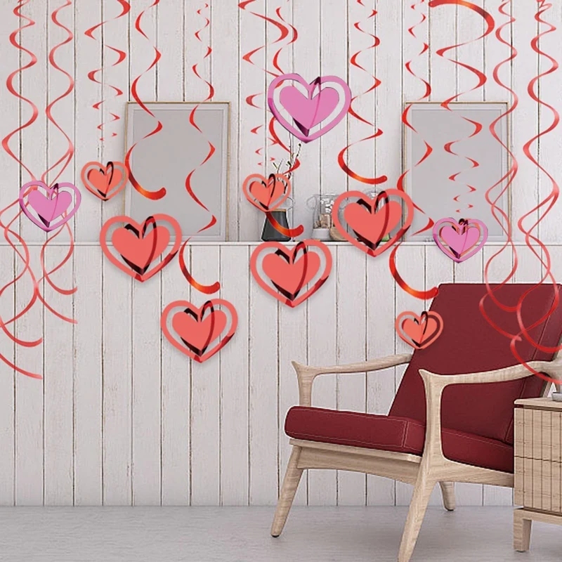 Украшения на День святого Валентина, подвеска на День святого Валентина, офисный декор, искусственный Декор на День святого Валентина, сердце, Вихревой декор, набор из 20 предметов
