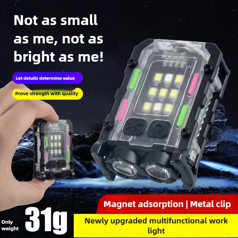 Яркий мини-налобный фонарь с двойным источником света и зажимом для шляпы, самооборона, работа, красная и синяя сигнальная лампа, лампа для обслуживания