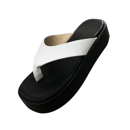 Lyinloo Summer New Beach Flip Flops Women Thick-soled Outer Wear Fashion Casual White 35