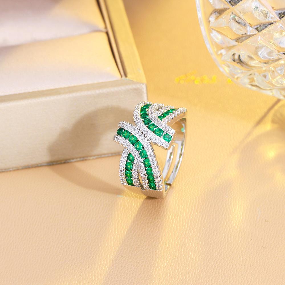 Яркое Атмосферное Светящееся Рубиновое Кольцо Трехмерное Неправильной Формы Открытое Кольцо Кольцо зелёный