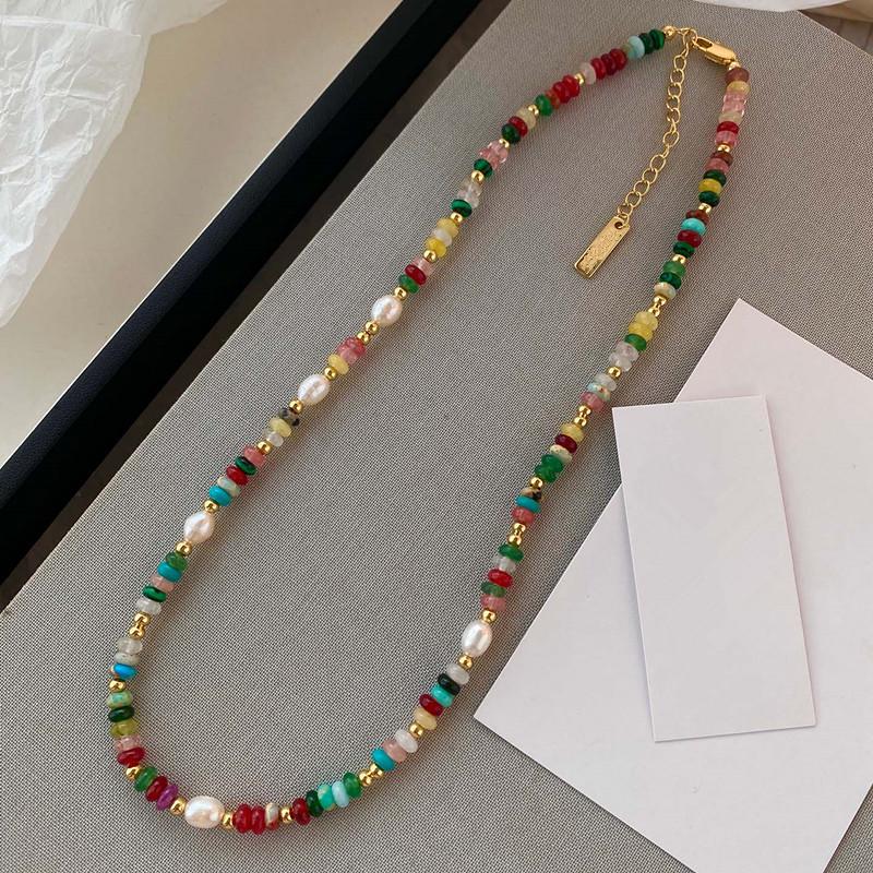 Яркое глазурованное ожерелье с бусинами: Камни смешанных цветов, жемчуг в форме рисового зерна и пресноводный жемчуг для женщин