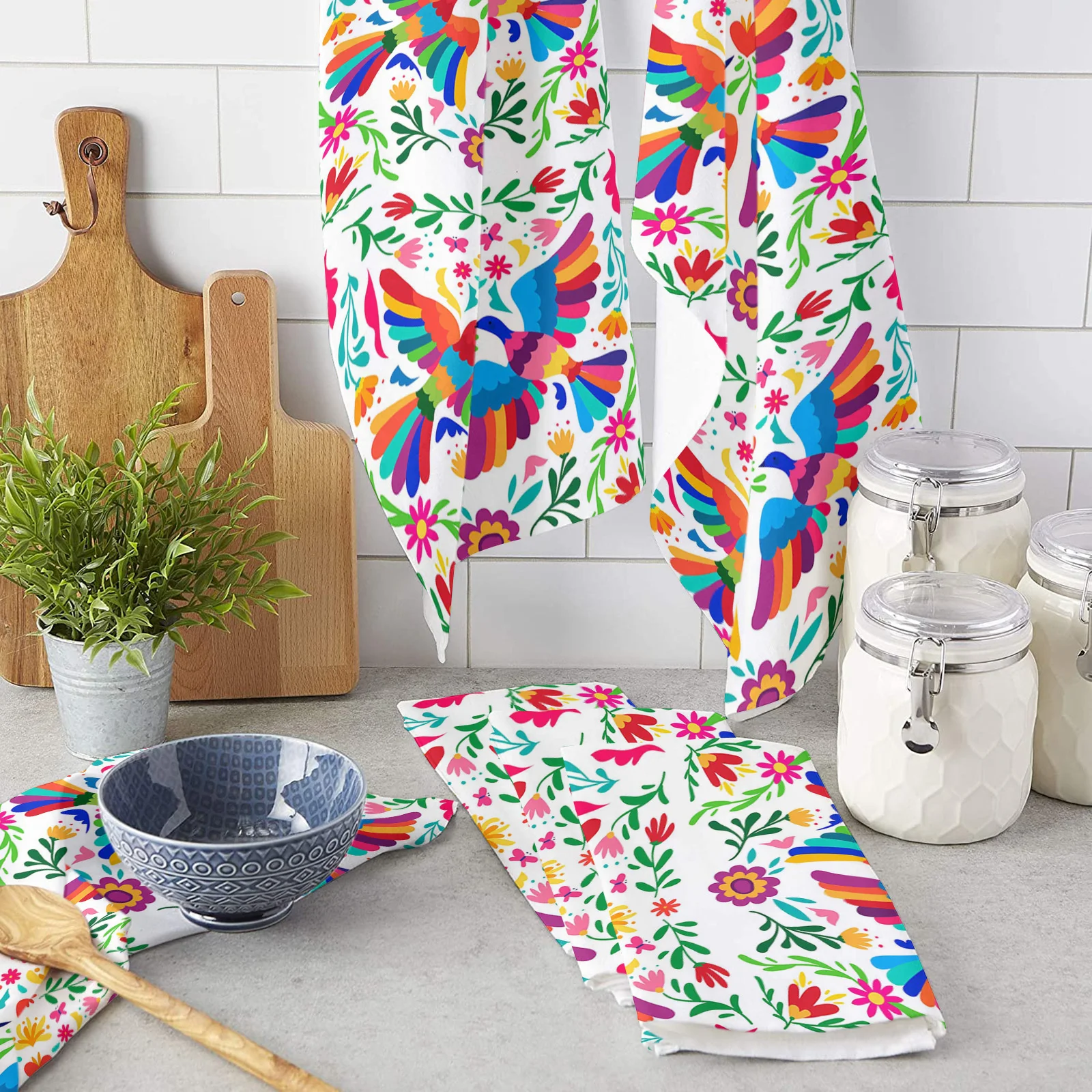 Яркое кухонное полотенце с птицами, цветами, листьями, полотенце для ванной комнаты, кухонная салфетка для мытья посуды, влагопоглощающая с...