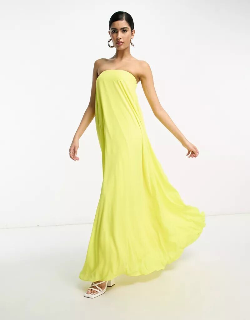 Ярко-желтое платье макси без бретелек с трапецией и эластичной деталью на спине ASOS