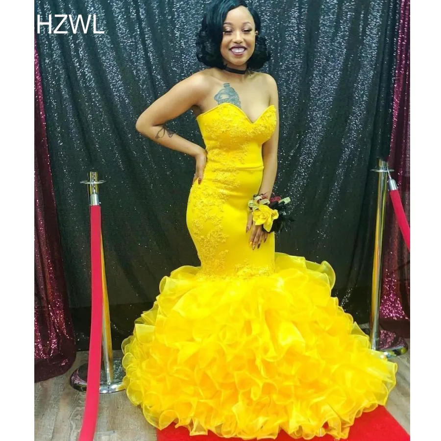 Ярко-желтые африканские черные платья Русалочки для выпускного вечера для девочек длинные вечерние платья арабского размера плюс в Дубае вечерние платья