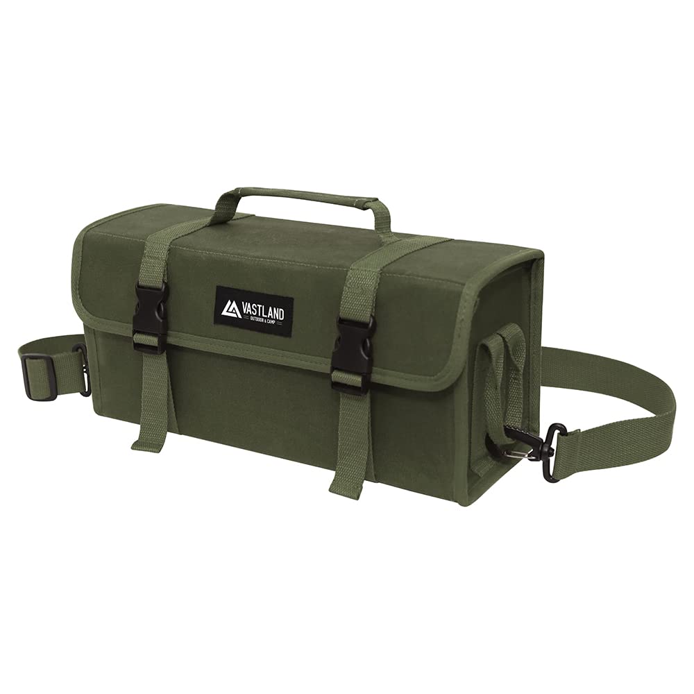 Ящик для инструментов VASTLAND Peg Case для кемпинга, вощеная холщовая ткань оливкового цвета, водонепроницаемая, водоотталкивающая обработка, встроенная усиливающая пластина, в комплекте плечевой ремень
