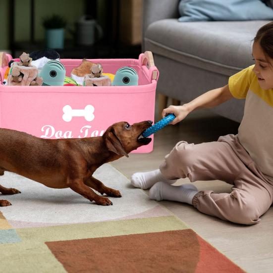 Ящик для хранения большой емкости, контейнер для хранения игрушек для домашних животных с деревянными ручками, фетровая корзина для хранения товаров для домашних животных