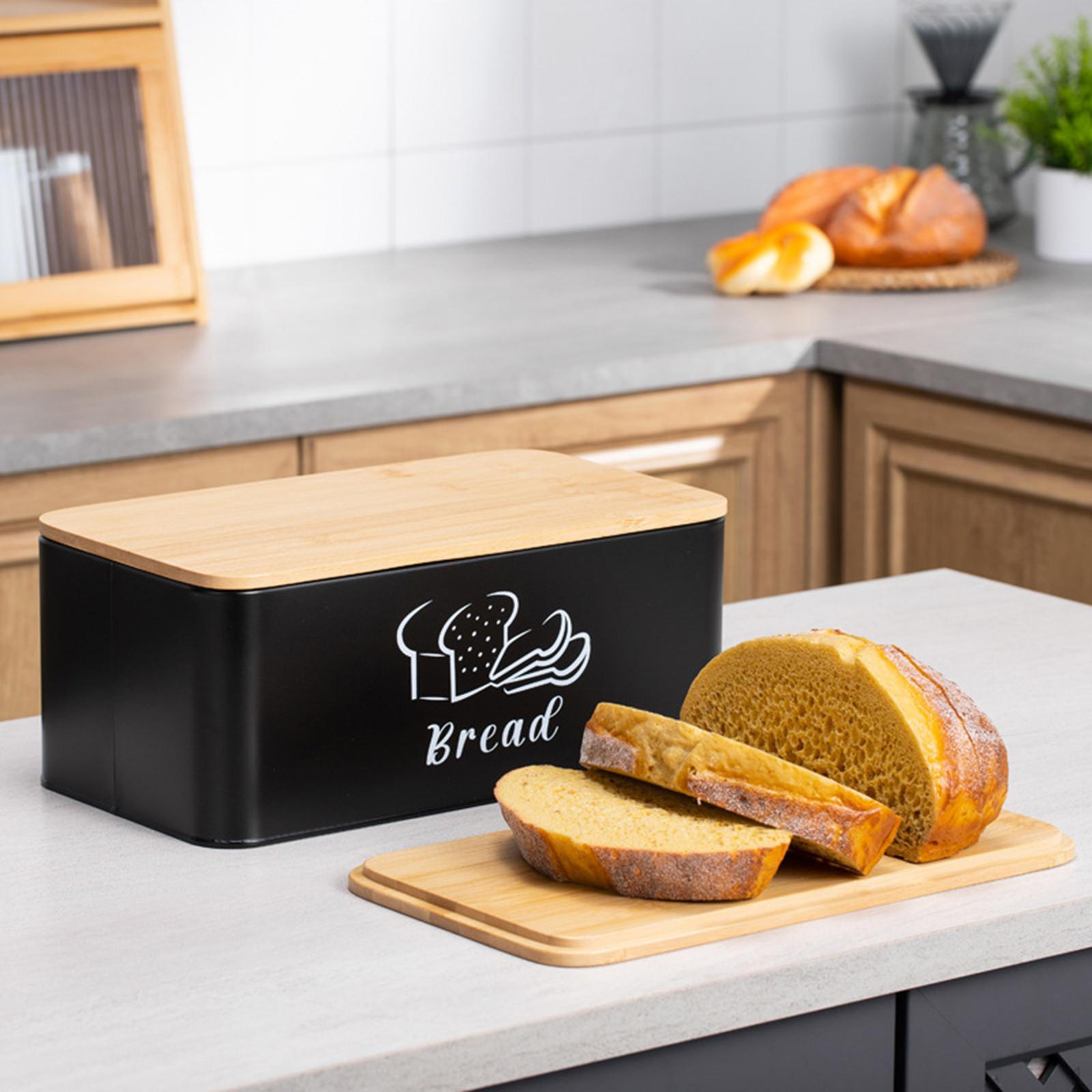 Ящик для хранения хлеба с крышкой-разделочной доской для организации пространства на кухне чёрный
