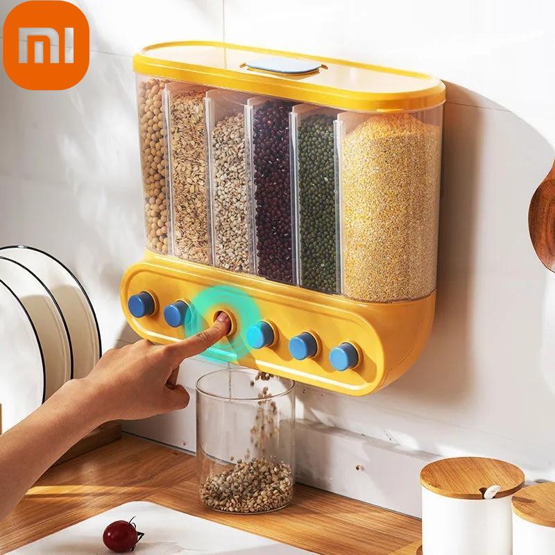 Ящик для хранения цельнозернового зерна Xiaomi. Кухонный настенный ящик для риса с подрешеткой. Влагостойкий герметичный прозрачный ящик для хранения зерна нажимного типа.