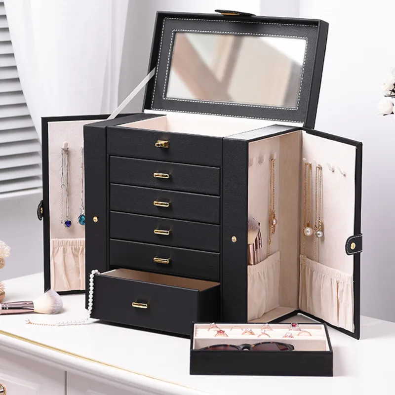 Ящик для хранения ювелирных изделий черный кожаный ювелирный Настольный ящик для хранения ожерелье серьги часы многочисленные Ёмкость ящи...