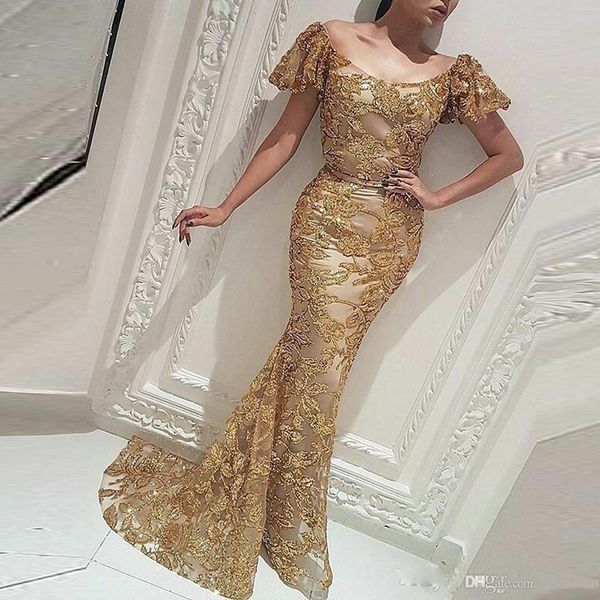 арабский дубай sparkly 2020 блестки золотая русалка вечерние платья scoop шея с коротким рукавом sweep поезд вечернее платье выпускные плать, Black;red