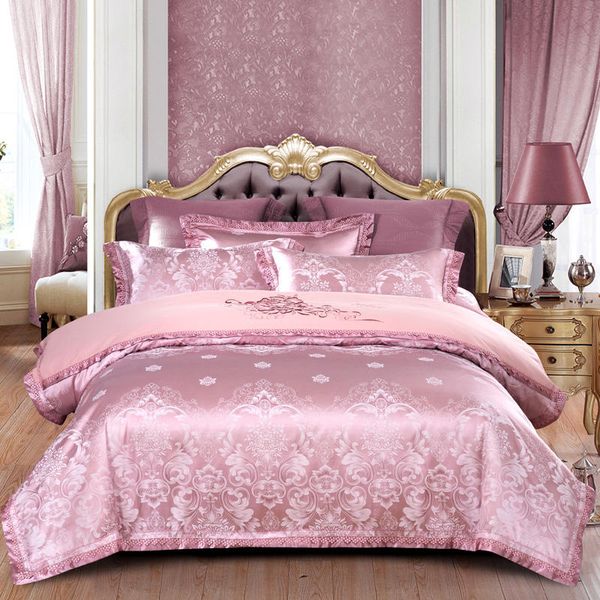 атласный жаккардовый комплект постельных принадлежностей кровать обложка стиль кровать комплект розовый серии пододеяльник наволочки королев