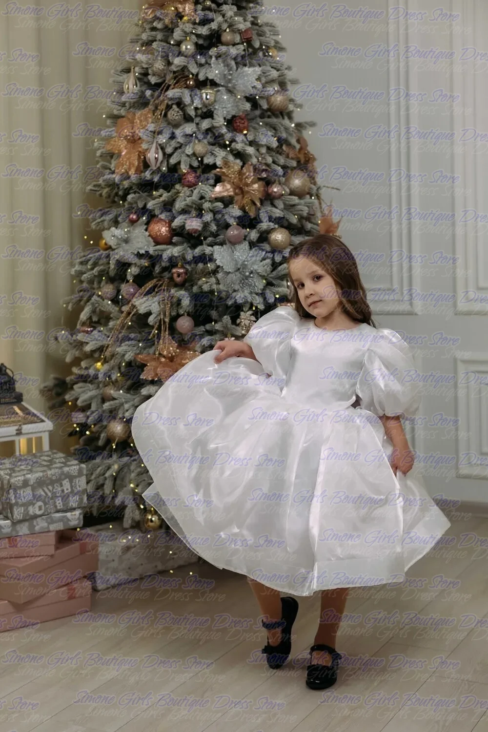 бальное платье Пышная юбка Атласные банты с пышными рукавами Платье с цветочным узором для девочек на Рождество День рождения Первое причастие Свадебные вечеринки