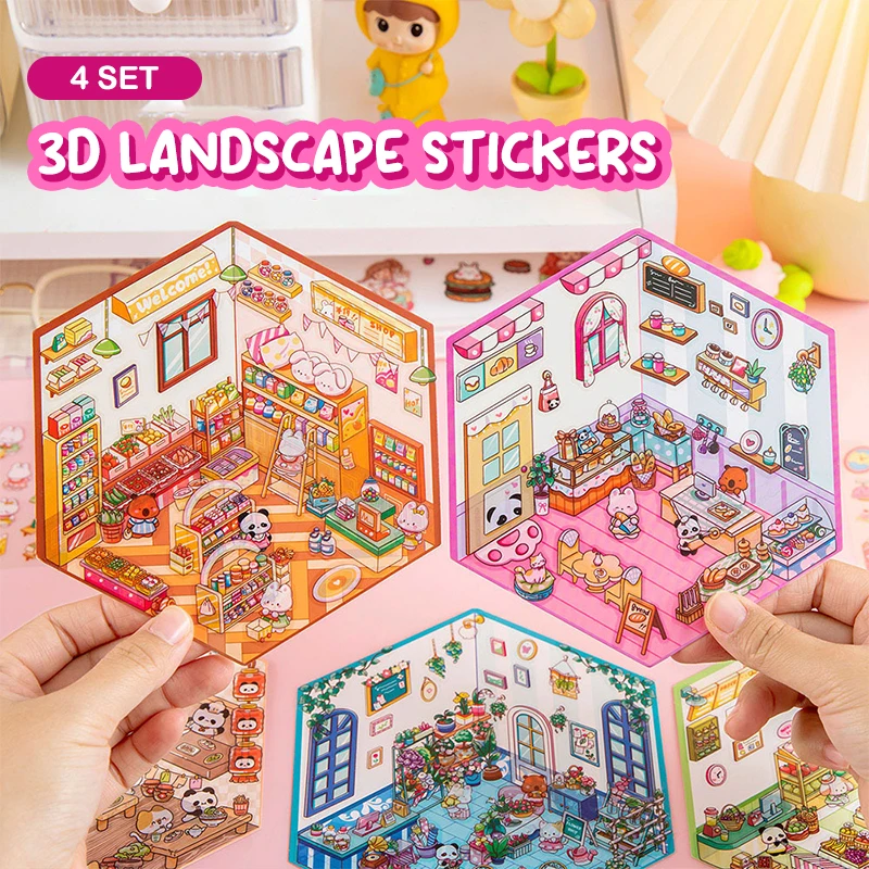 4 компл., мультяшные кавайные миниатюрные наклейки для визуального укладки, миниатюрные 3D наклейки для пейзажной сцены, наклейки для ручного счета