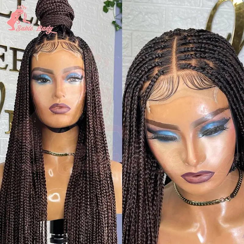 Синтетические прозрачные кружевные плетеные парики без узлов, парик с косичками для чернокожих женщин, 36 дюймов, парик из синтетических волос, длинный черный парик