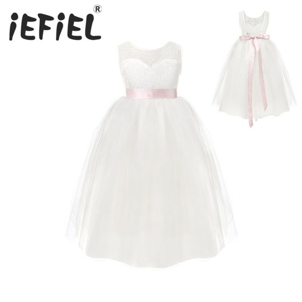 iefielgirls party dress princess girls dresses summer flower lace wedding dress children kids dresses for girls clothes set include: 1pc dress condition: new with tag material: polyester, lace color: white(as pictures shown) dress length: tea length(as pictures shown) features: gorgeous kids girls sleeveless princess wedding party dress, high waist design round neck, u-shape open back and hidden back zipper top bodice with floral lace design, sash ties back satin bowknot with brooc...