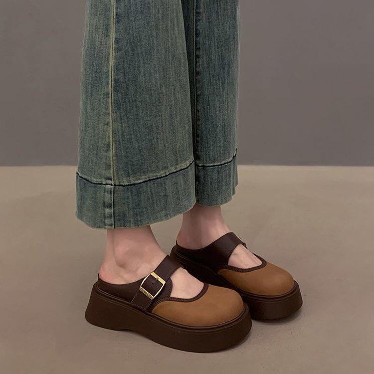 босоножки на толстой подошве с пряжкой-ремнем, женские летние 2025, новая модная повседневная обувь Boken на платформе для увеличения роста, носить с юбками 40 темно-коричневого