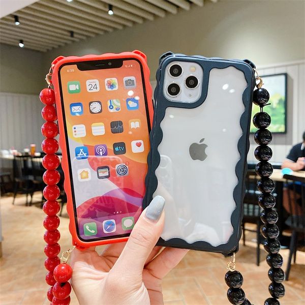 бусина цепь телефона случае для iphone 11 прозрачных акриловых крышек корпуса 11 про мобильного телефон обратно с ремешком для iphone11 про