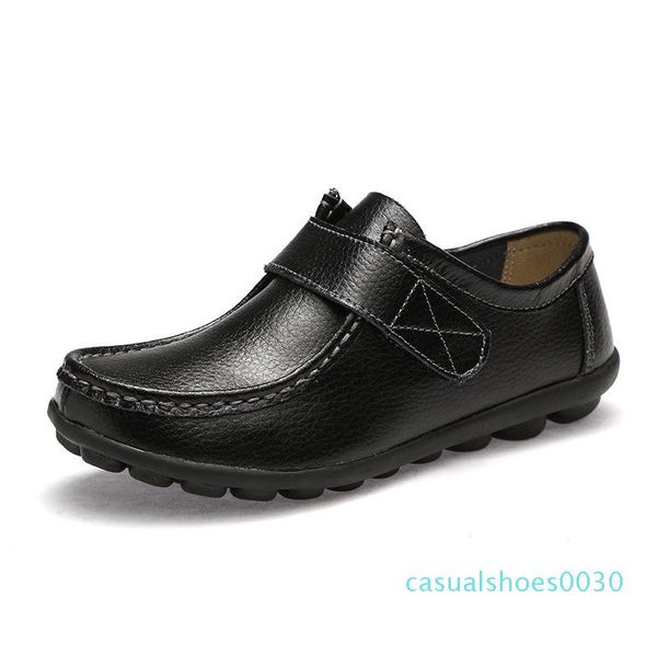 весна осень 2019 новый тип кожаная маленькая белая обувь досуг женская плоское дно мелкий рот среднего возраста старая мать обувь c30, Black