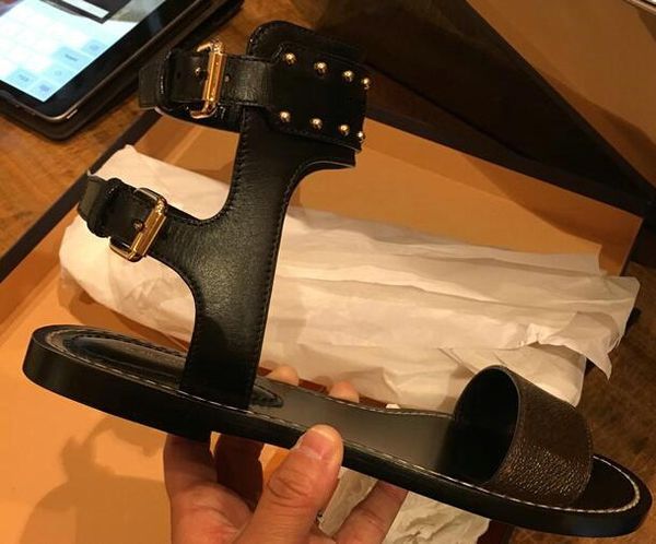 внимание! горячие фирменные женские кожаные сандалии с принтом дизайнерская кожаная подошва идеальная плоская кожаная сандалия с принтом siz, Black