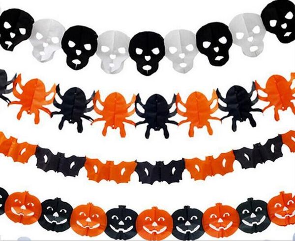 feature: 100% brand new and high quality bars, clubs, haunted houses halloween party indispensable decorations, to boost the atmosphere! color:as the pic 4 desings for option: skull, pumpkin, bat , spider material: paper length: 3m-4m (different designs have a little difference)